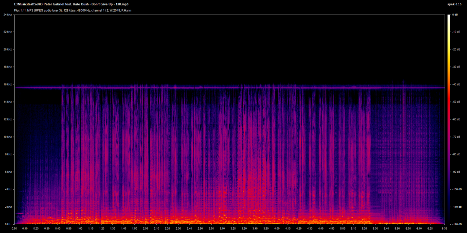 Voici le spectrogramme du MP3 128, pour un résultat de 6,152 Mo :