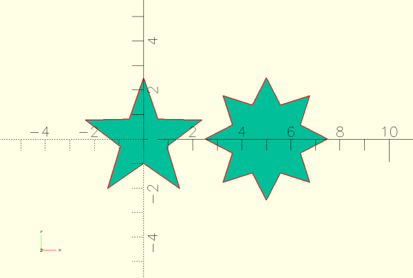 aa=[for(i=[0:2*(fn)])[sin(360/(2*fn)*i)*(pair(i)==true?d1:d2),cos(360/(2*fn)*i)*(pair(i)==true?d1:d2)]]