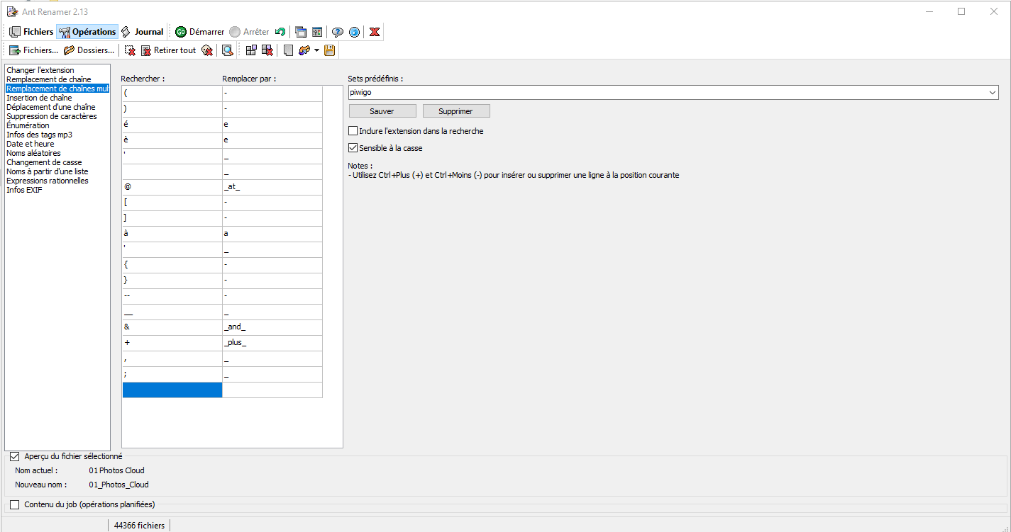 AntRenamer permet d'appliquer toute une série de règles à appliquer (en une fois).